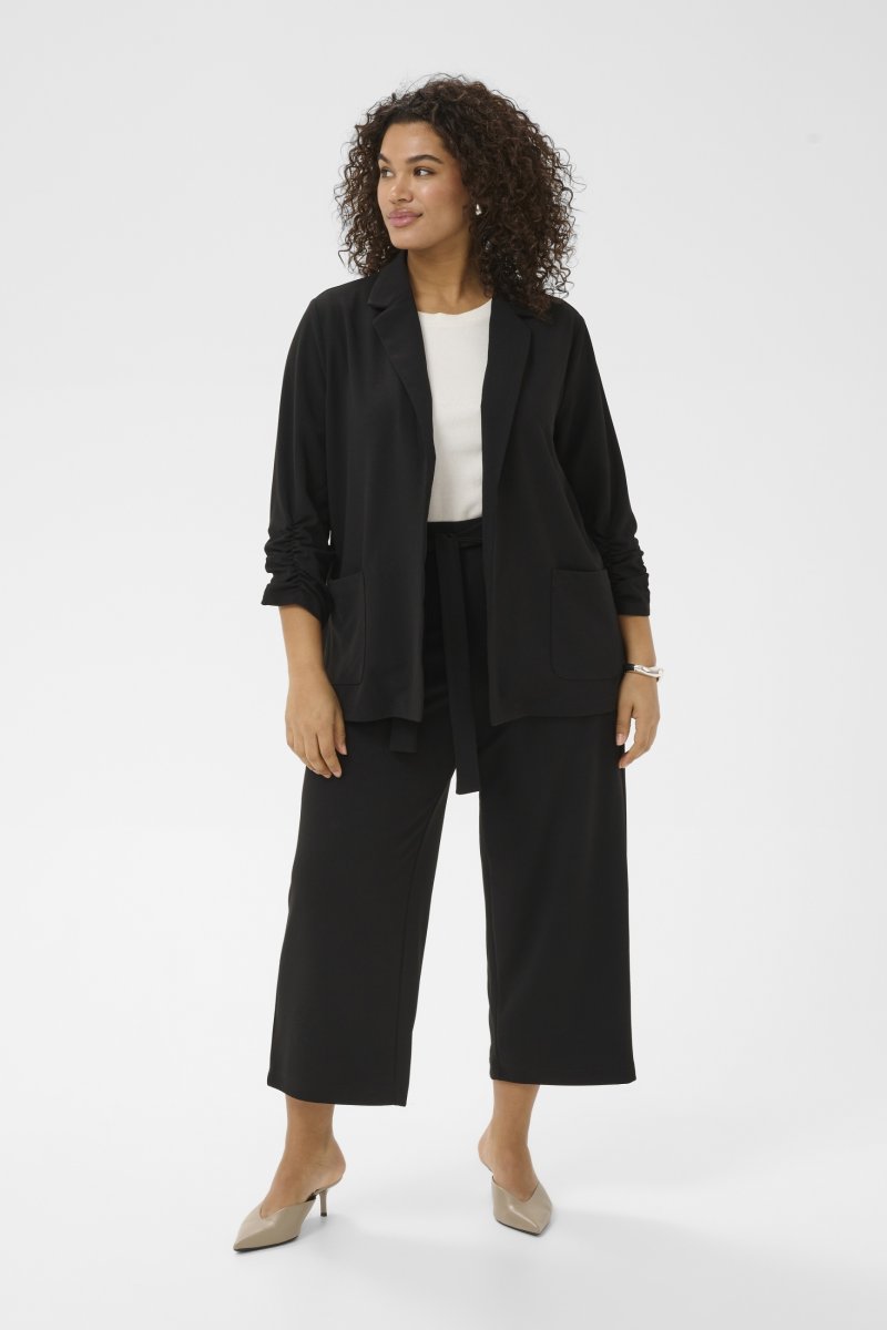 BlazerFås i størrelserne S–XLFra mærket Kaffe CurveMateriale: 50 % polyester (genanvendt), 45 % polyester, 5 % elastanLøs pasformFarven er sortKlik her for at se størrelsesguiden