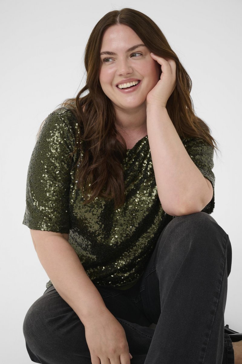BluseFås i størrelserne S–XLFra mærket Kaffe CurveMateriale: 98 % polyester, 2 % elastanAlmindelig pasformFarven er grønKlik her for at se størrelsesguiden