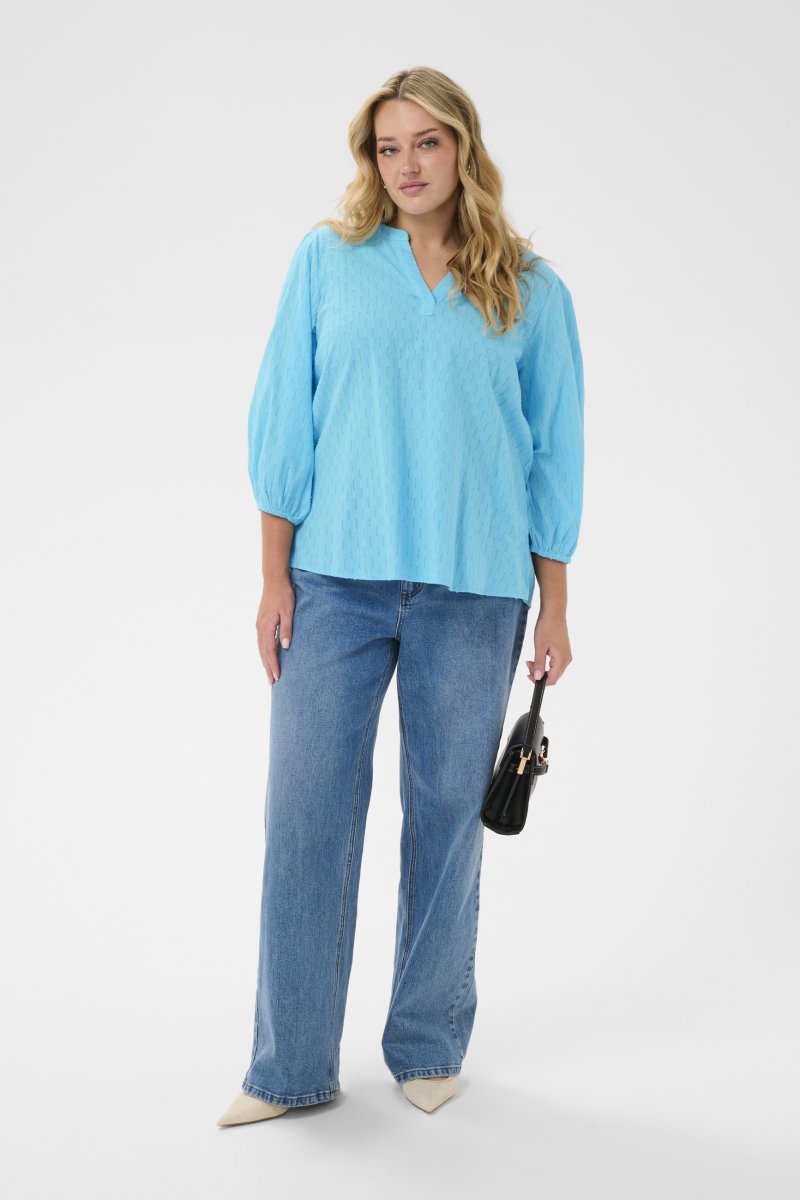 BluseFås i størrelserne 42–54Fra mærket Kaffe CurveFremstillet af 100% bomuldAlmindelig pasformFarven er blåKlik her for at se størrelsesguiden