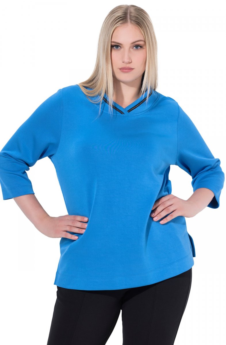 Størrelsesguide - Ulla Popken Classic Fit with Side Slits 3/4 Sleeve Sweatshirt Royal Blue