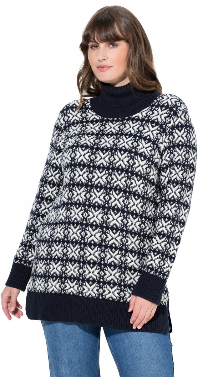 Størrelsesguide - Ulla Popken Eco Cotton Geometric Snowflake Sweater Navy