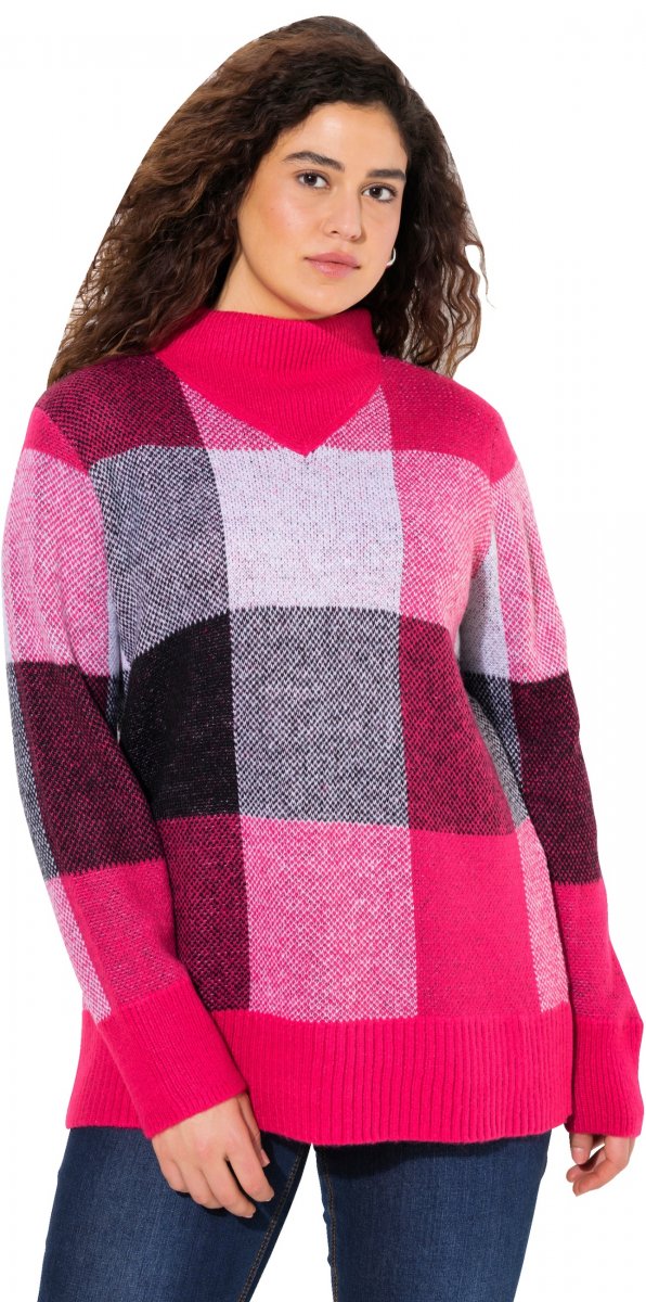 Størrelsesguide - Ulla Popken Grand Check Long Sleeve Sweater Red Pink