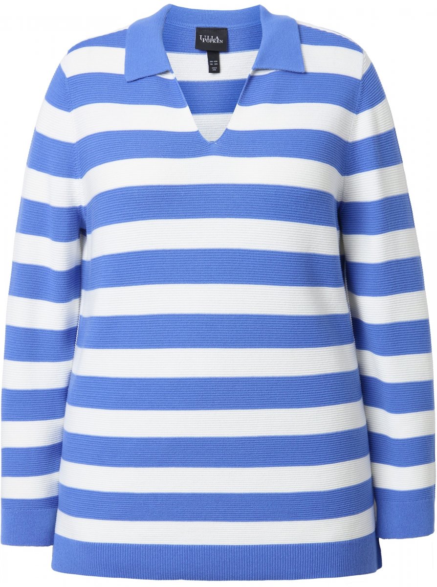 Størrelsesguide - Ulla Popken Striped Polo Collar Long Sleeve Sweater Aegean Blue