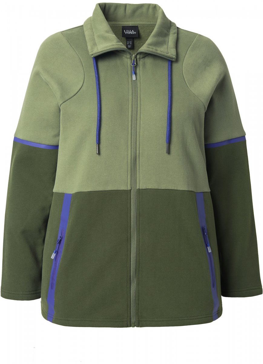 Ulla Popken Two-Tone ZIp Front Pocket Sweatshirt Olive Green