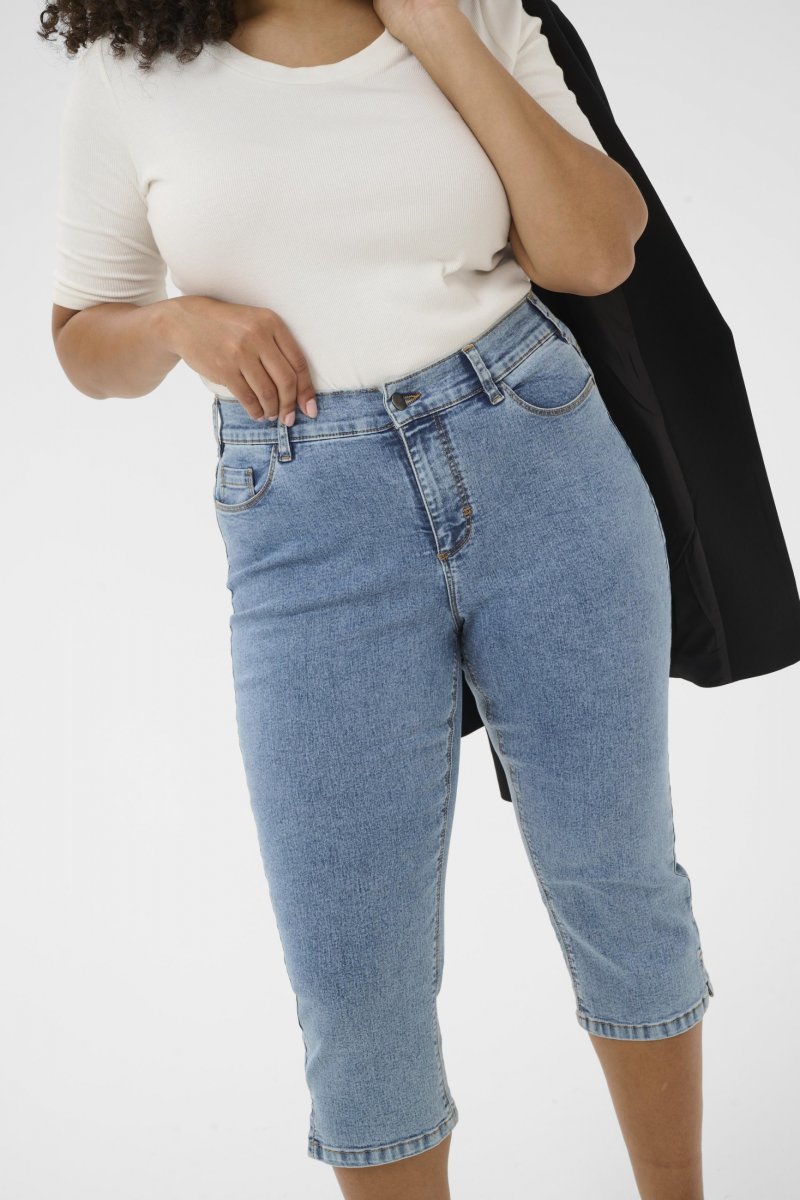JeansFås i størrelserne 42–54Fra mærket Kaffe CurveMateriale: 81 % bomuld, 17 % polyester, 2 % elastanAlmindelig pasformFarven er blåKlik her for at se størrelsesguiden