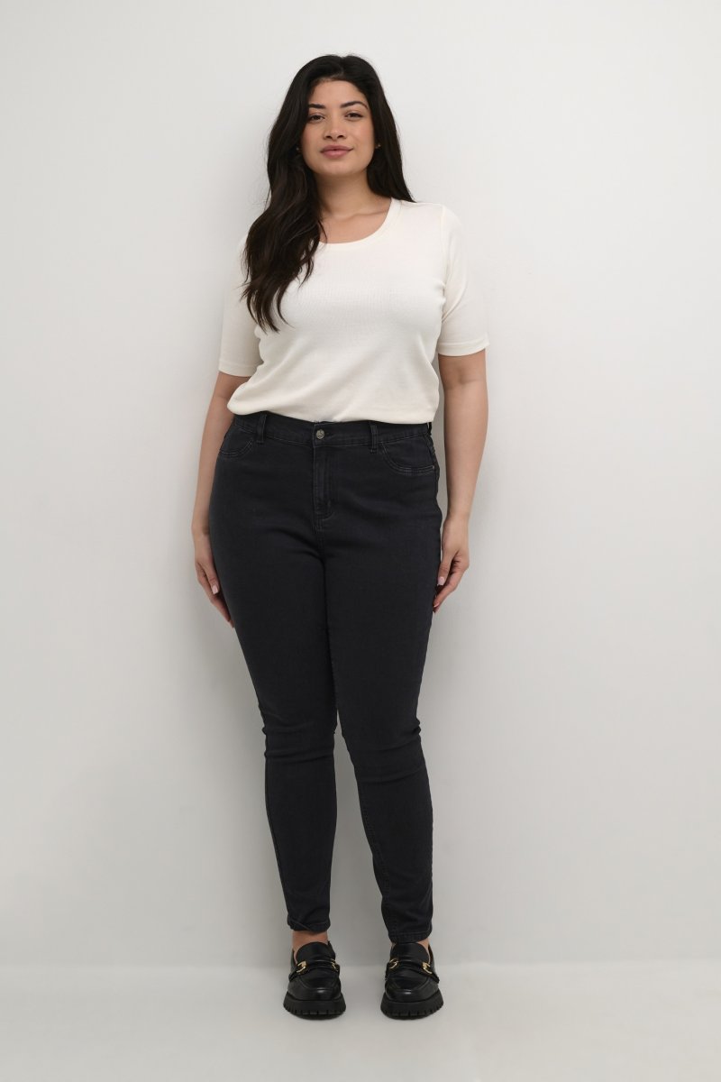 JeansFås i størrelserne 42–56Fra mærket Kaffe CurveFremstillet i bomuld med lidt elastanAlmindelig pasformFarven er sortKlik her for at se størrelsesguiden