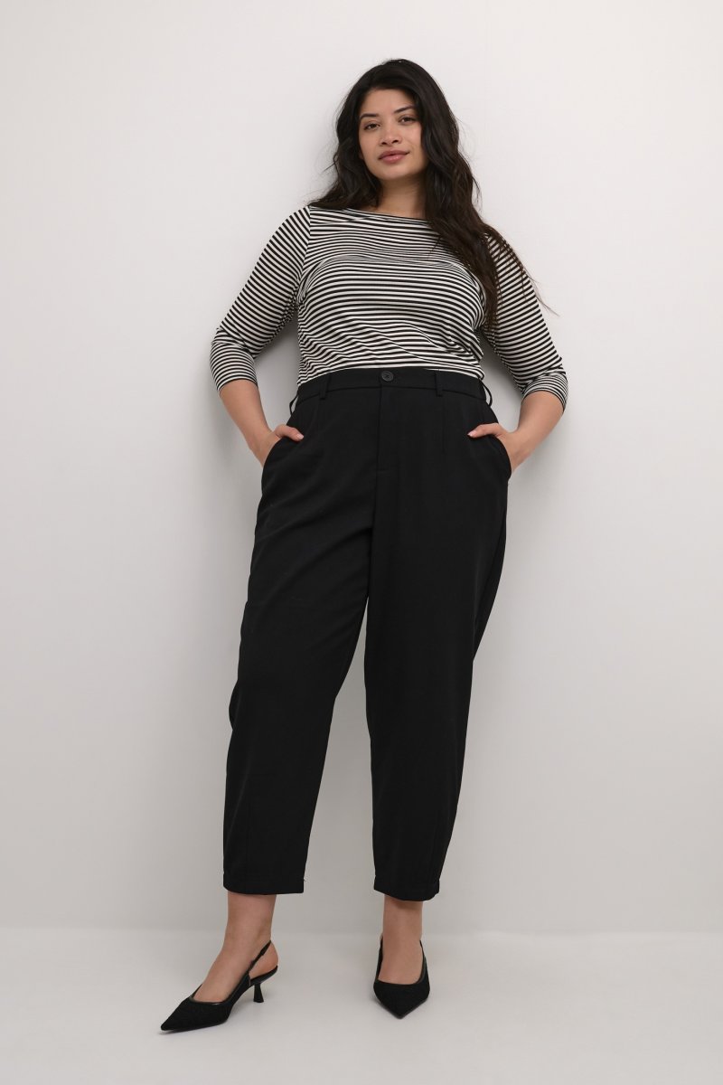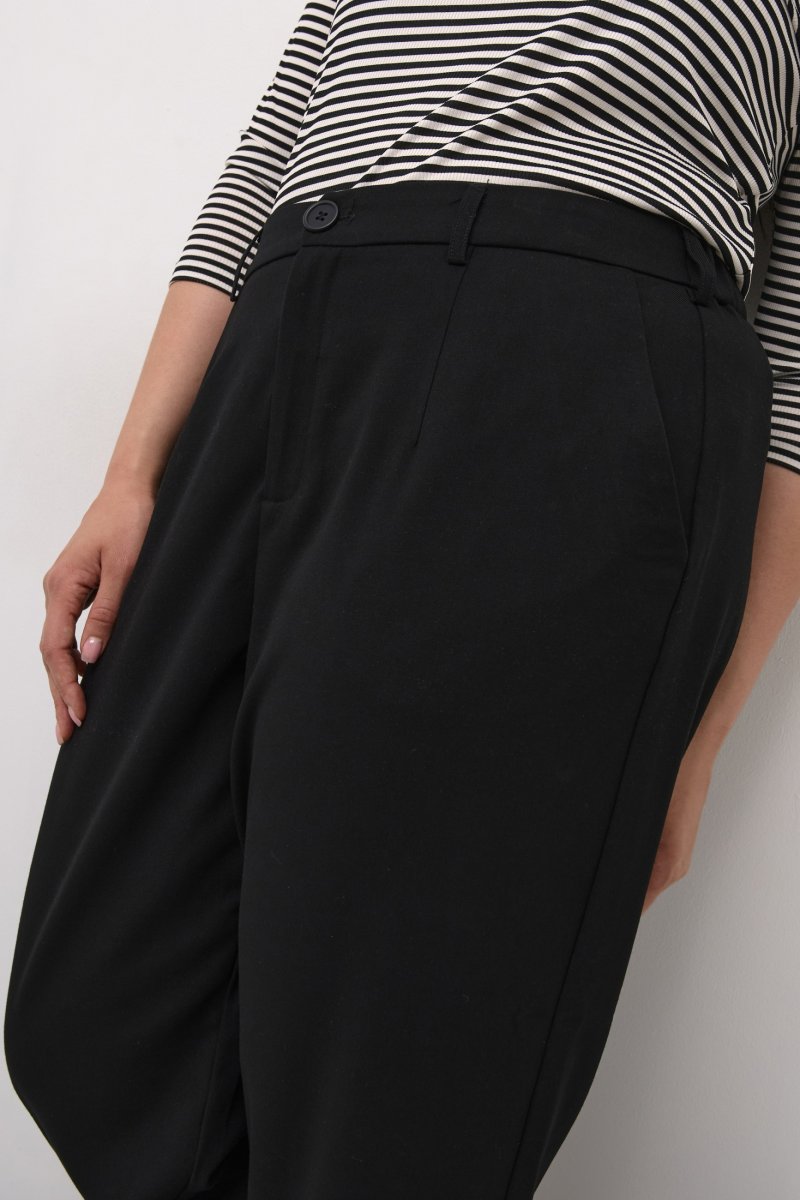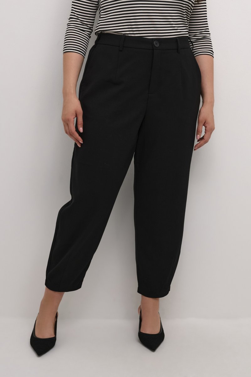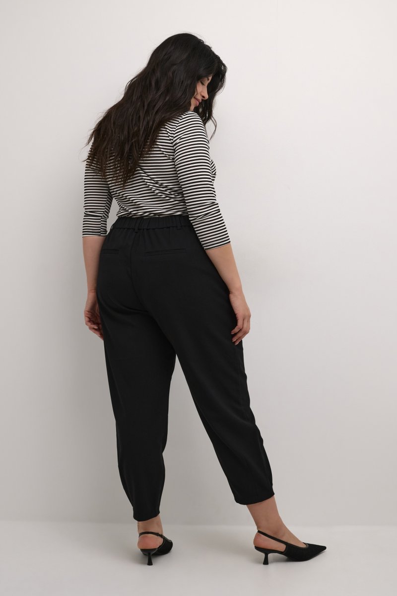 BukserFås i størrelserne 42–56Fra mærket Kaffe CurveFremstillet af 64% polyester (genanvendt), 33% viskose, 3% elastanLøs pasformFarven er sortKlik her for at se størrelsesguiden