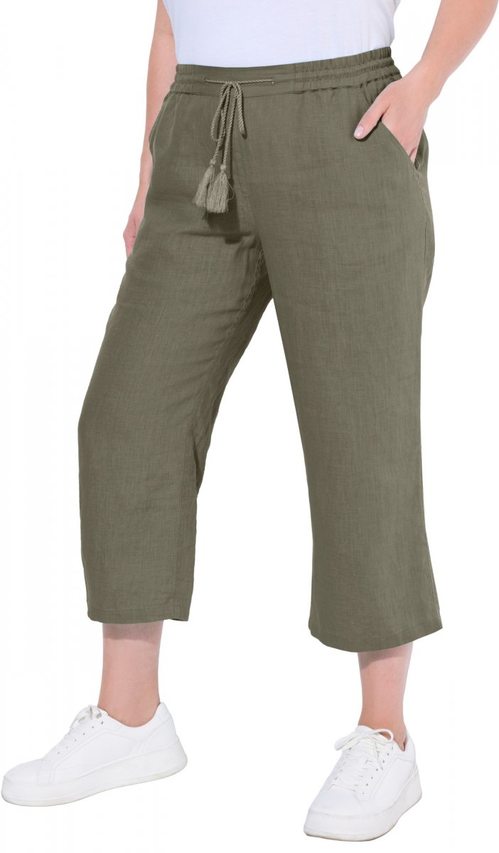 Størrelsesguide - Ulla Popken Cool Linen Elastic Waist Capri Pants Loden Green
