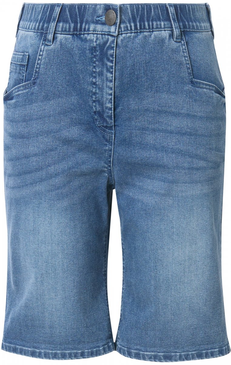 Størrelsesguide - Ulla Popken Denim Wide Leg Elastic Waist Bermuda Shorts Blue Denim