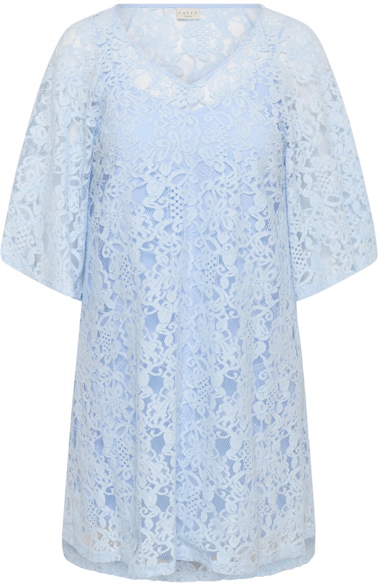 KjoleFås i størrelserne 42–54Fra mærket Kaffe CurveMateriale: 80 % bomuld, 20 % polyamidA-faconFarven er blåKlik her for at se størrelsesguiden