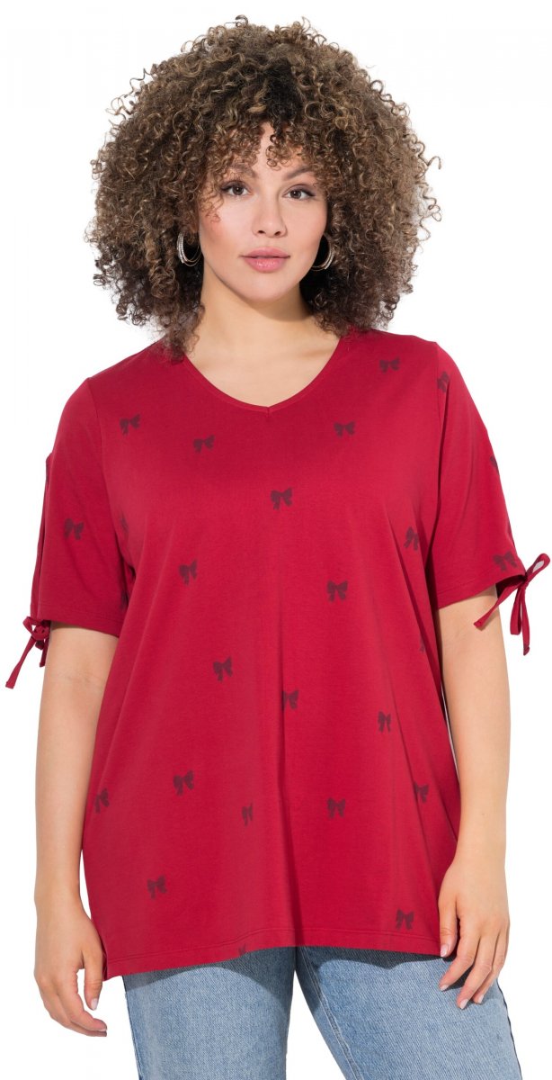 Størrelsesguide - Ulla Popken Bow Print Split Sleeve Tee Ruby Red