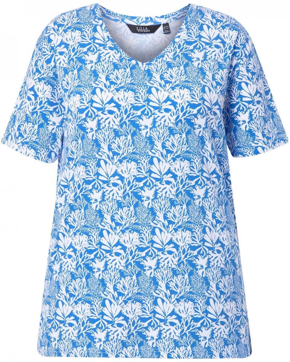 Størrelsesguide - Ulla Popken Coral Reef Printed Short Sleeve V-Neck Tee Teal Blue