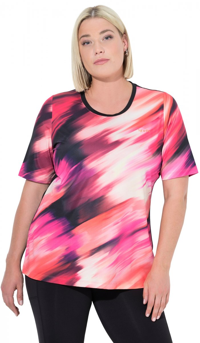 Størrelsesguide - Ulla Popken Cutout Abstract Print Short Sleeve Tee Hibiscus Red