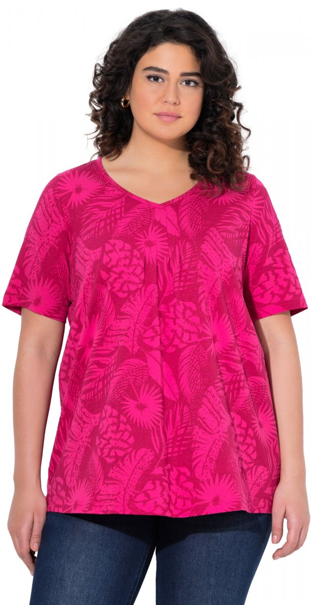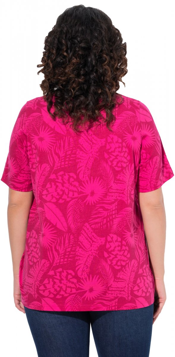 Størrelsesguide - Ulla Popken Feather Print Short Sleeve V-Neck Tee Berry