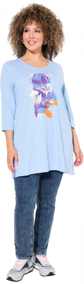 Størrelsesguide - Ulla Popken Floral Motif 3/4 Sleeve Tunic Tee Light Blue