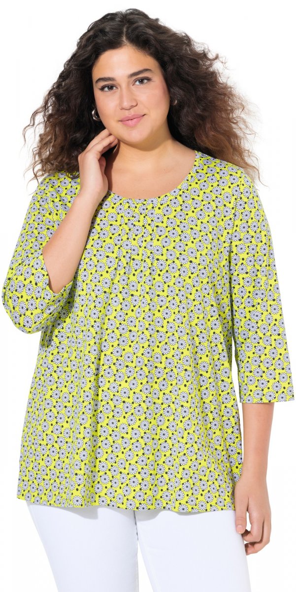 Størrelsesguide - Ulla Popken Flower Print 3/4 Sleeve A-Line Tee Lime