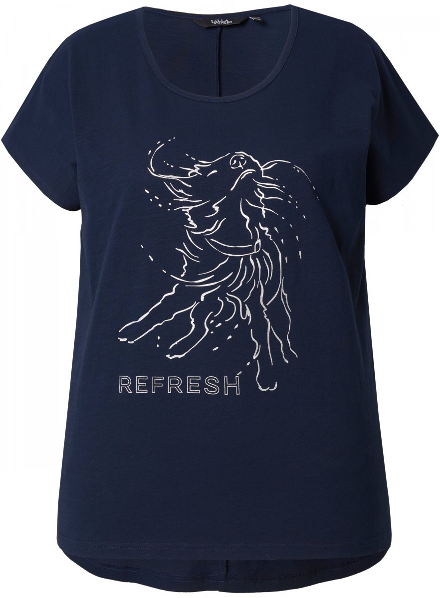 Størrelsesguide - Ulla Popken Metallic Animal Cap Sleeve Graphic Tee Navy