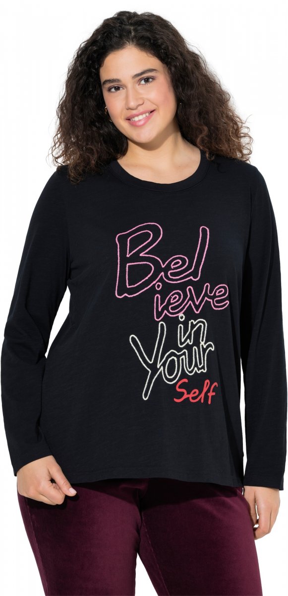 Størrelsesguide - Ulla Popken Motivational Graphic Long Sleeve Tee Black