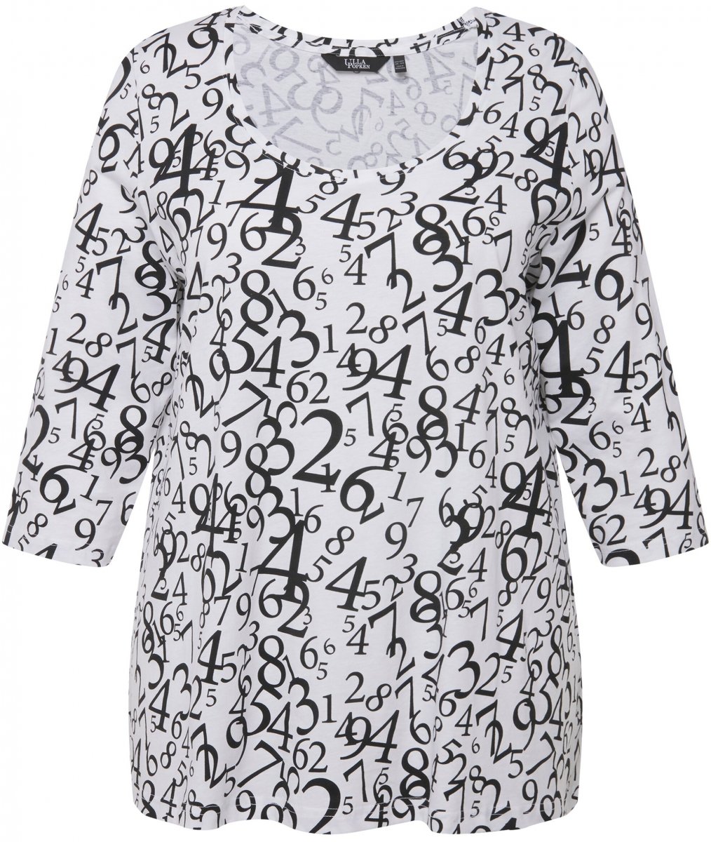 Størrelsesguide - Ulla Popken Number Print 3/4 Sleeve Tee Snow White