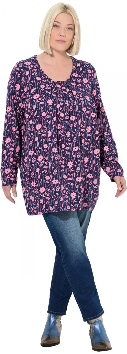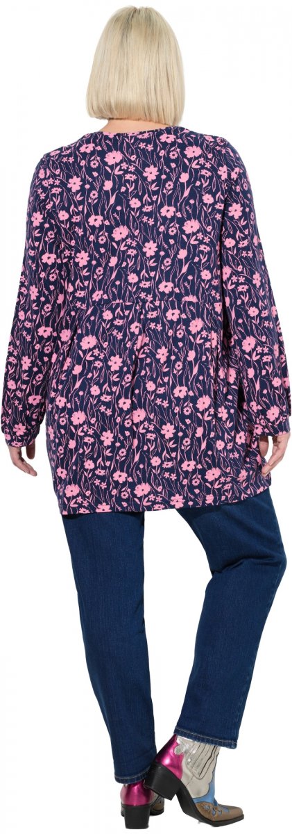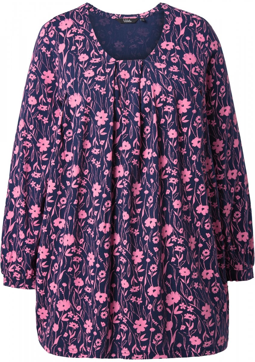 Størrelsesguide - Ulla Popken Pleated Long Sleeve Floral Knit Tunic Ink Blue