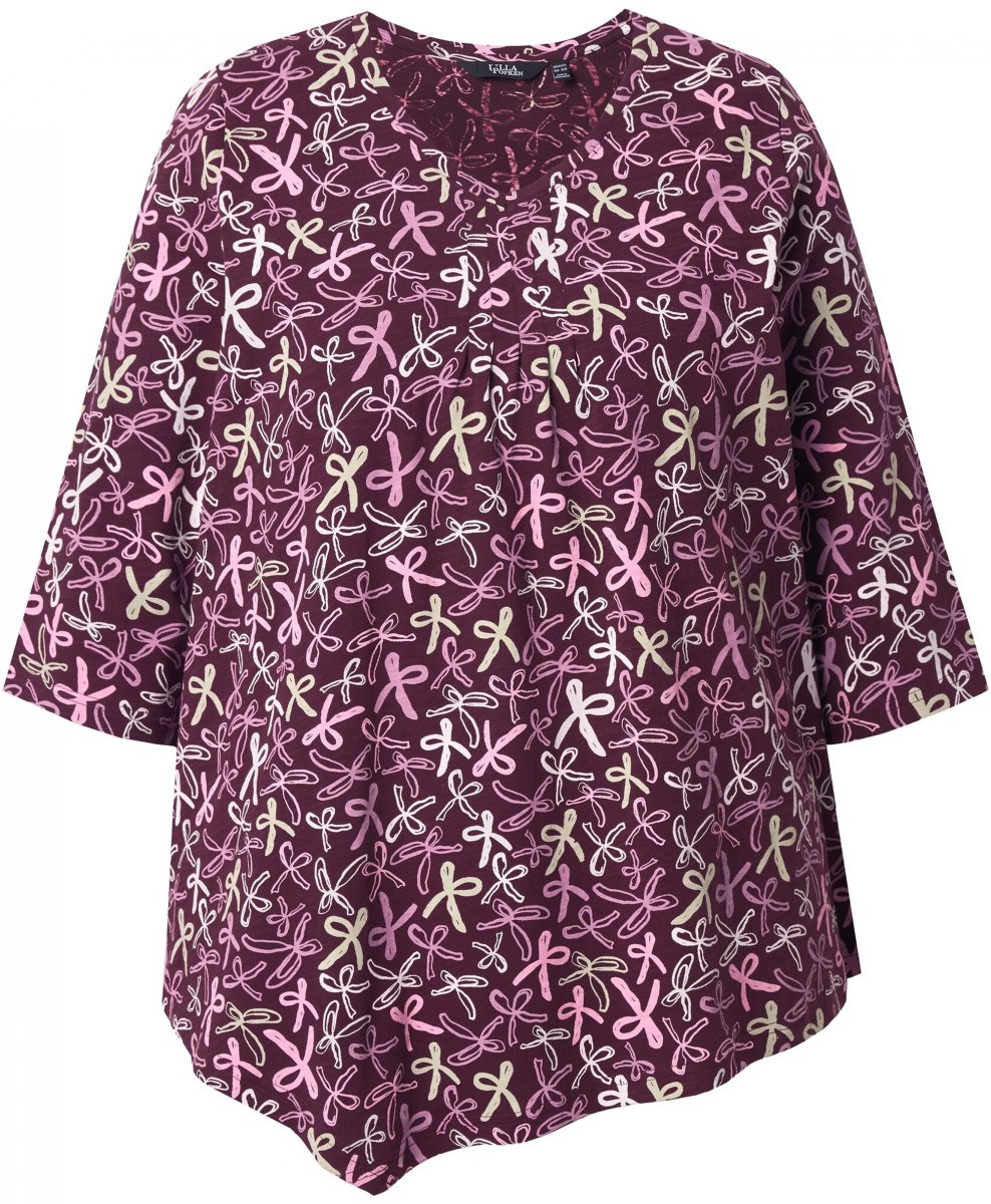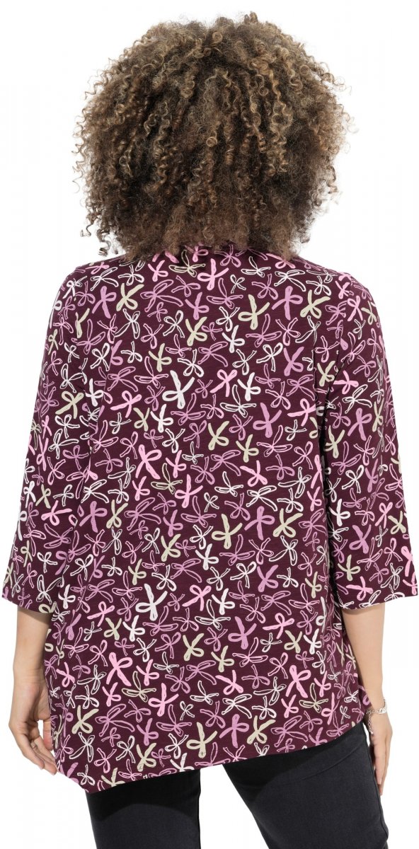 Størrelsesguide - Ulla Popken Ribbon Print 3/4 Sleeve Asymmetric Tee Plum