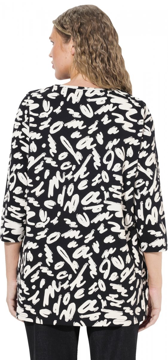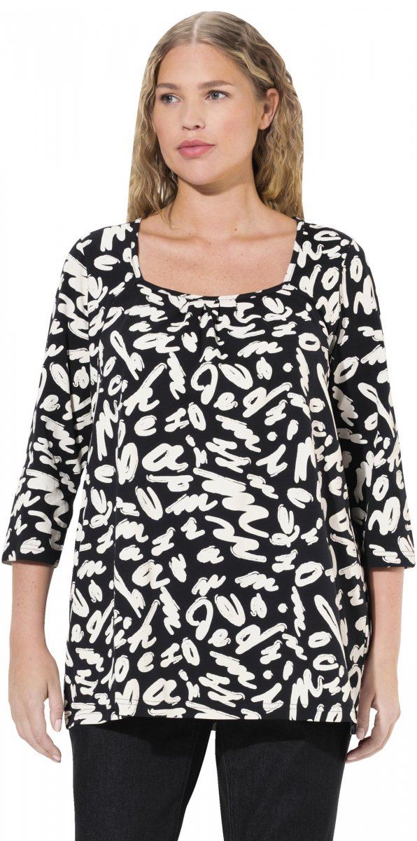 Størrelsesguide - Ulla Popken Scribble Print Square Neck 3/4 Sleeve Tee Black