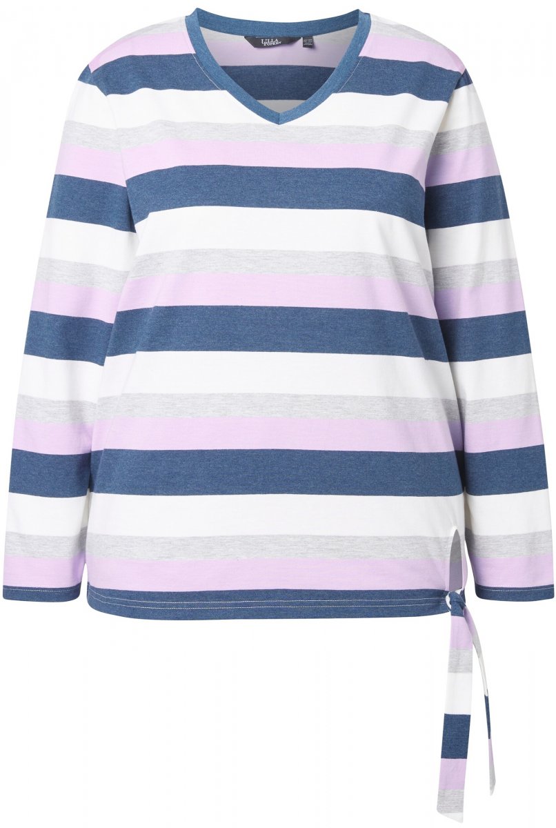 Størrelsesguide - Ulla Popken Striped Knotted Hem Long Sleeve Tee Lavender