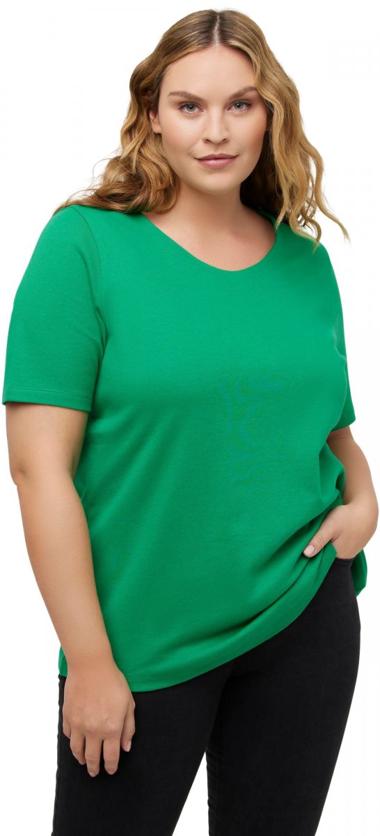 Størrelsesguide - Ulla Popken Double Layer Rounded V-Neck Slim Fit Tee Green Emerald