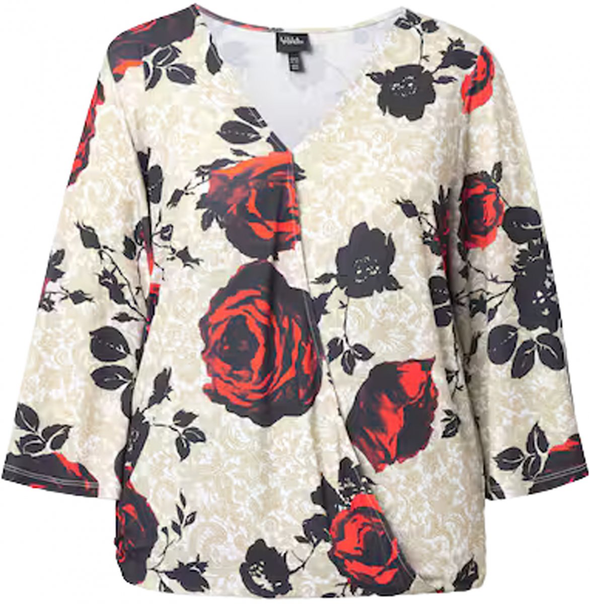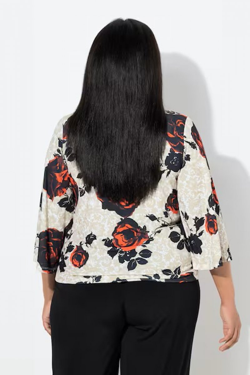 Størrelsesguide - Ulla Popken Rose Print Faux Wrap Top Off-White