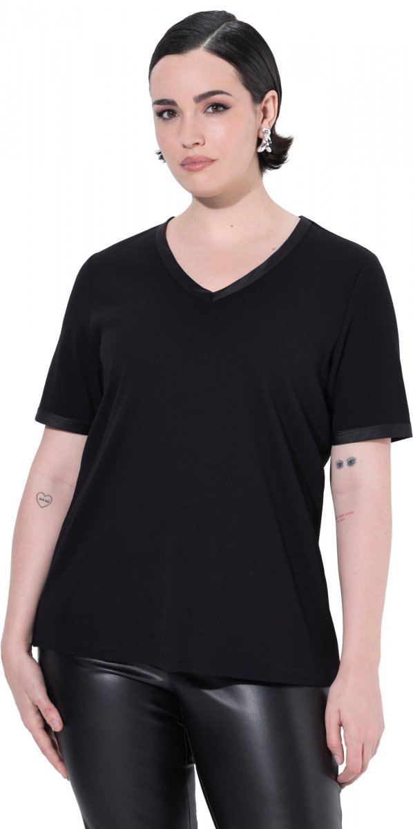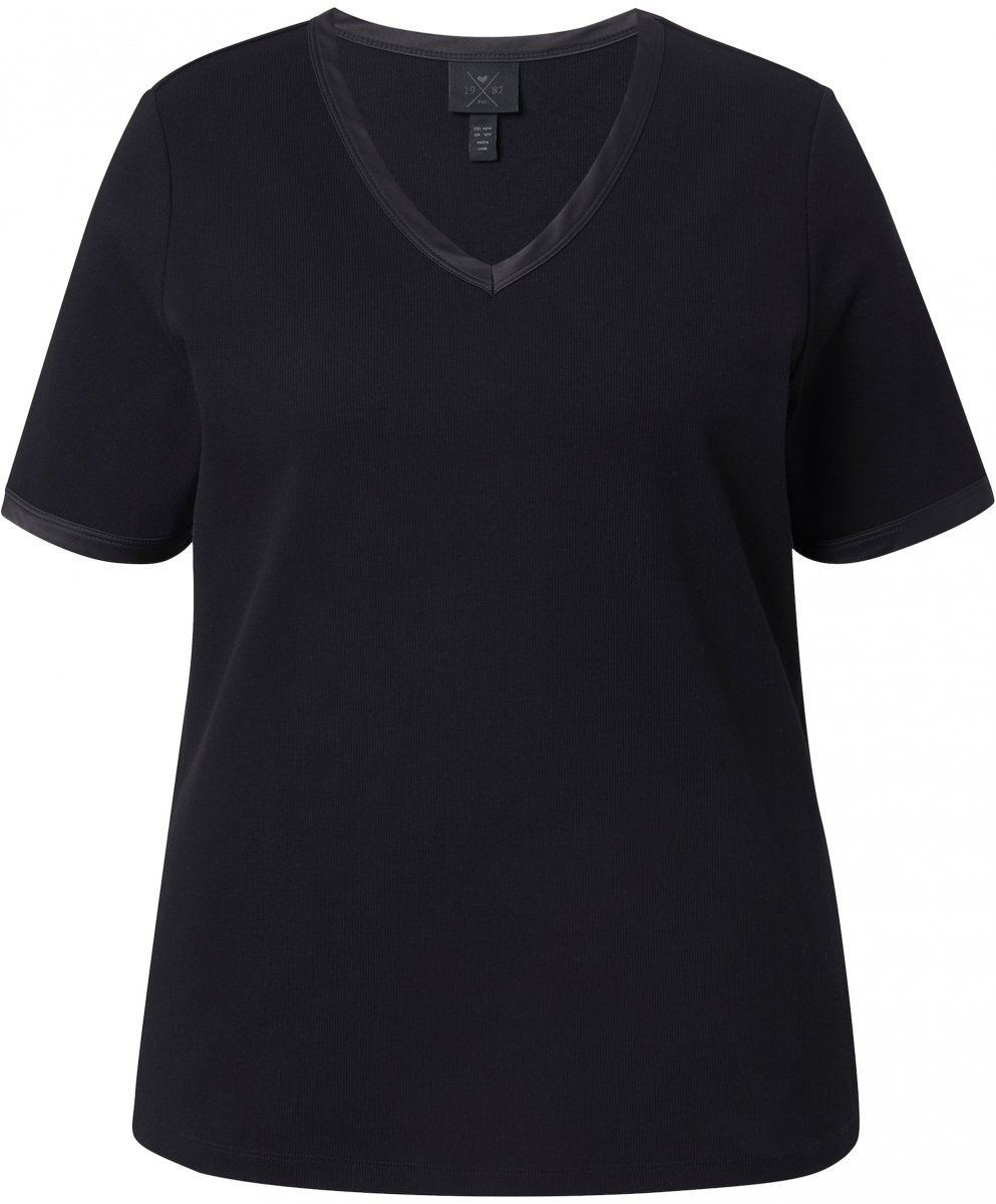 Størrelsesguide - Ulla Popken Satin Trimmed Ribbed Jersey Short Sleeve T-Shirt Black