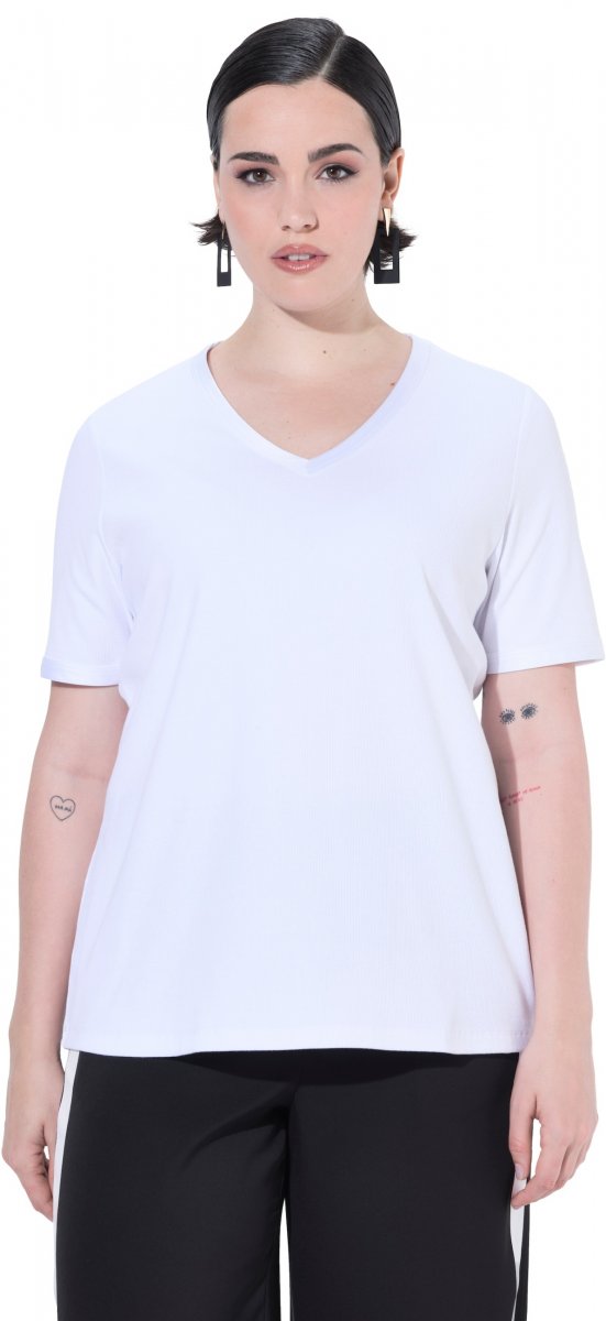 Størrelsesguide - Ulla Popken Satin Trimmed Ribbed Jersey Short Sleeve T-Shirt Snow White