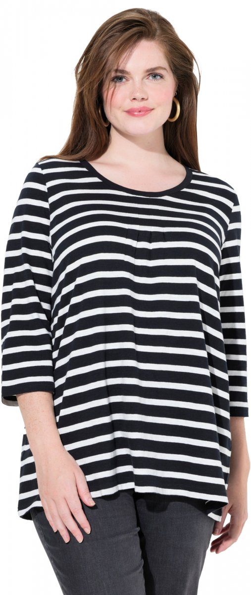 Størrelsesguide - Ulla Popken Striped 3/4 Sleeve A-Line Tee Black