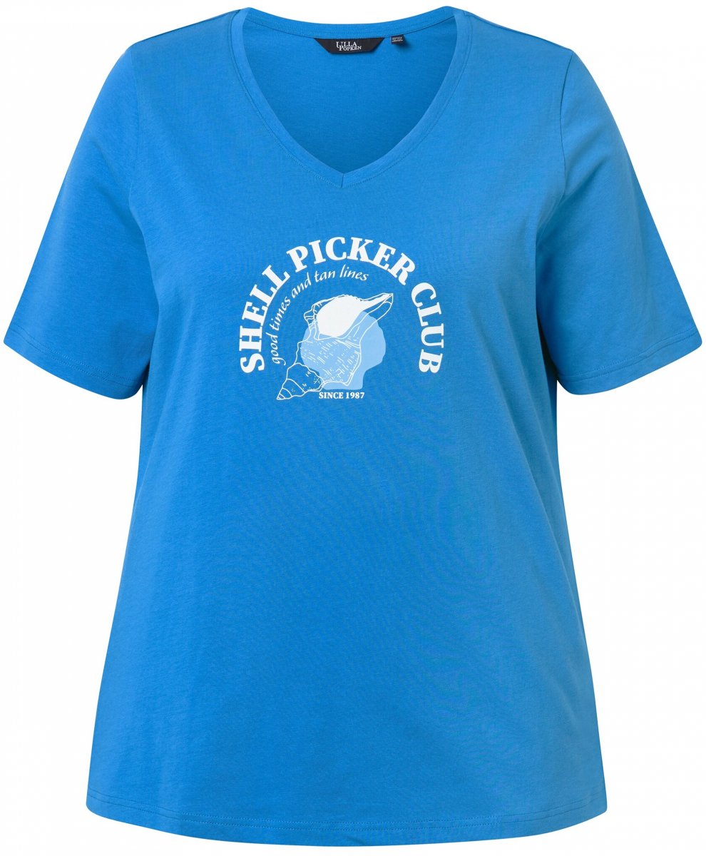 Størrelsesguide - Ulla Popken Shell Picker Club Short Sleeve Graphic Tee Teal Blue