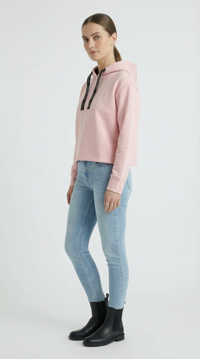 Kort hættetrøjeFås i størrelserne S-XXLFra mærket Nora MikkenFremstillet af 60% bomuld og 40% polyesterLøs pasformFarven er lyserødKlik her for at se størrelsesguiden