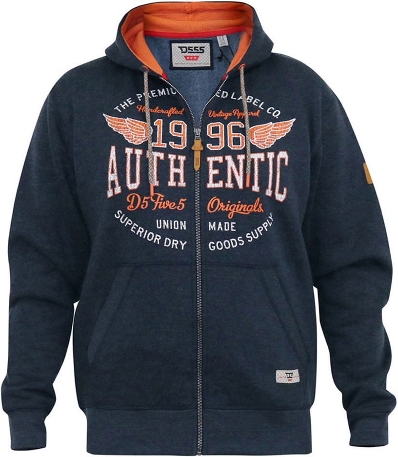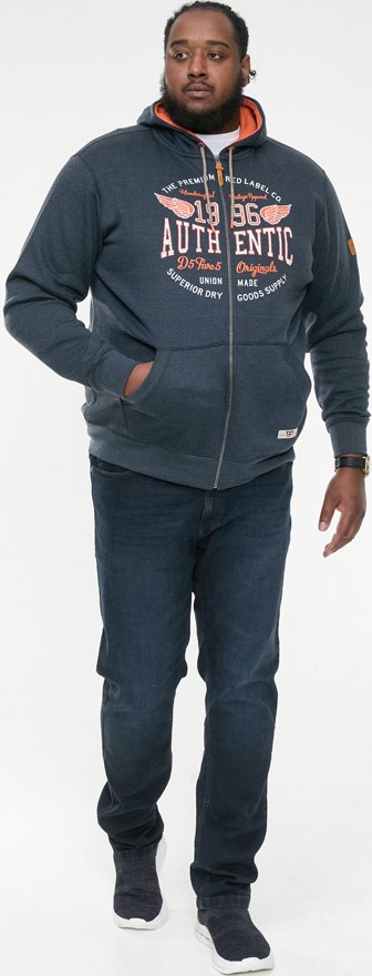 Størrelsesguide - D555 HAMILTON Full Zip Hoody With Authentic 1996 Chest Print Denim