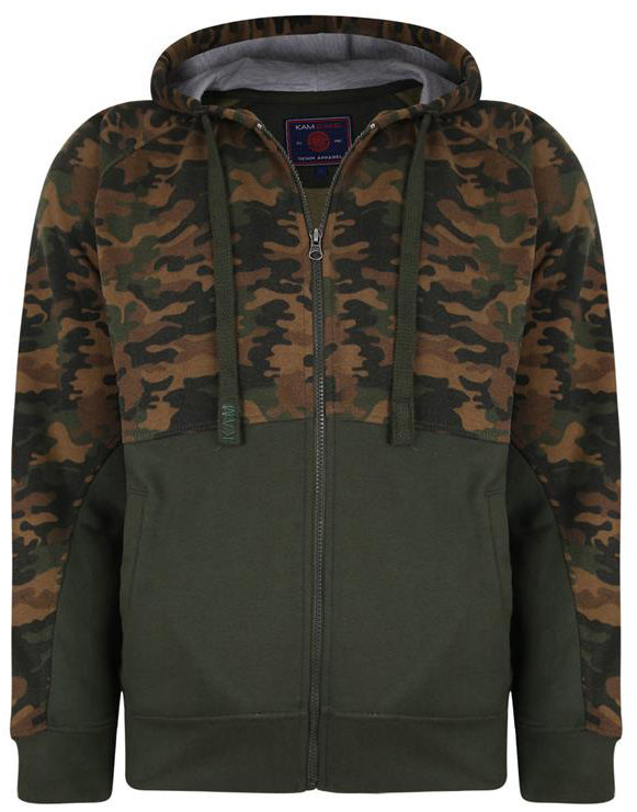 Størrelsesguide - Kam Jeans 7036 Camo Print Full Zipper Hoodie Khaki