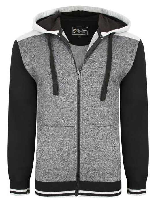 Størrelsesguide - Kam Jeans 7042 Zip Thru Panelled Hoody Charcoal
