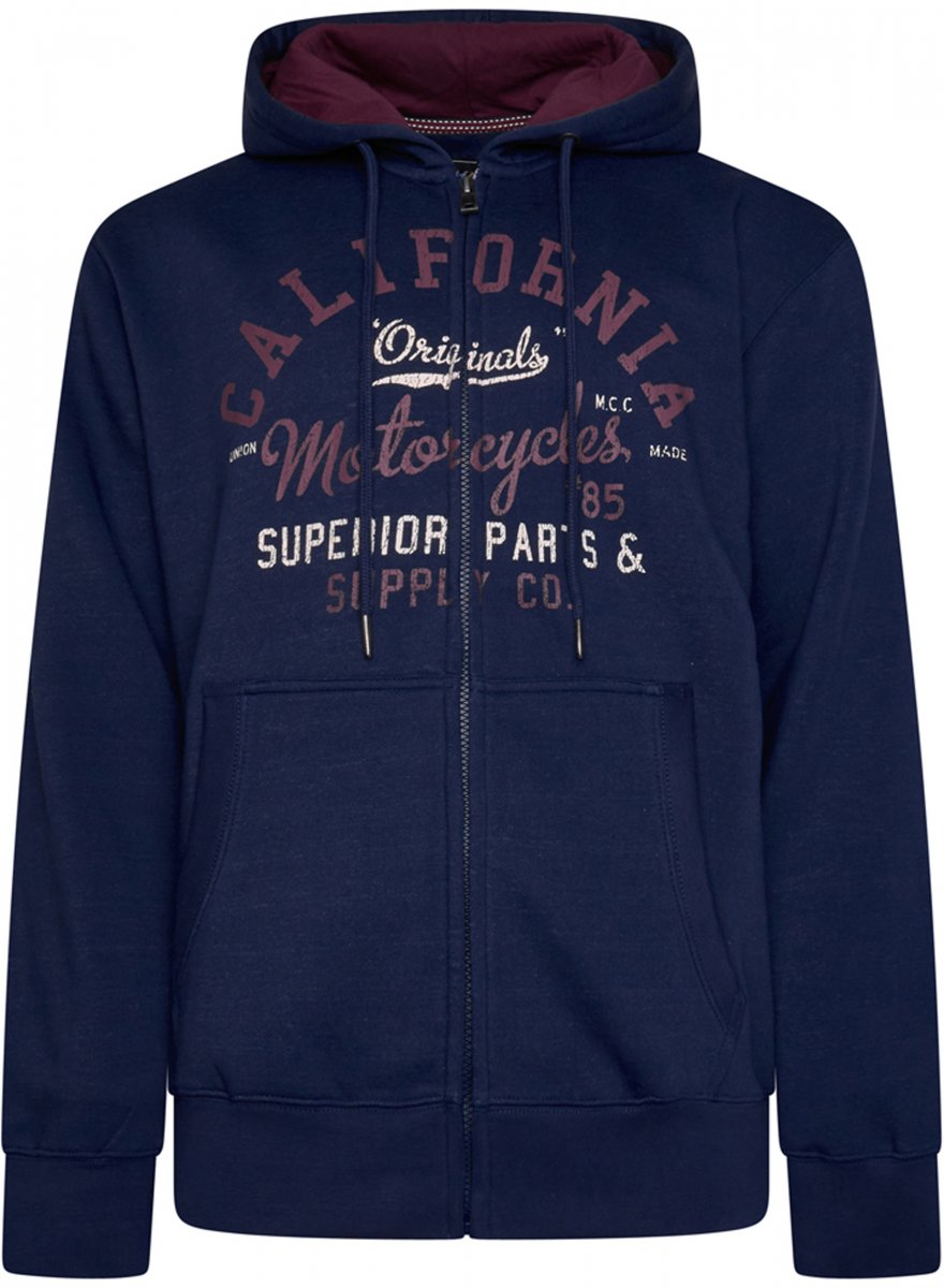 Størrelsesguide - Kam Jeans 7085 Californai Zip Thru Hoodie Navy