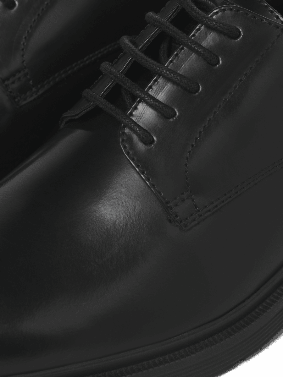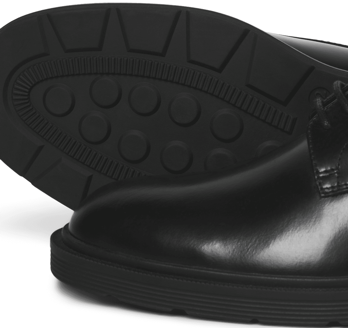SkoFås hos os i størrelser 43–46Fra det velkendte mærke Jack & JonesFremstillet af 100% Ægte LæderFarven er sortÅret rundt - hvis din størrelse er udsolgt, bestiller vi den til dig fra leverandør.Klik her for at se størrelsesguiden
