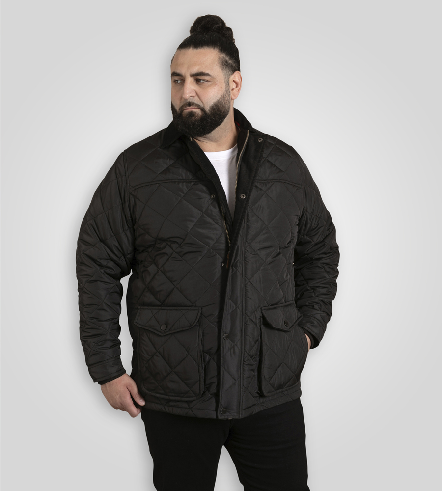 Størrelsesguide - D555 Harborough Quilted Jacket with Corduroy Collar Black