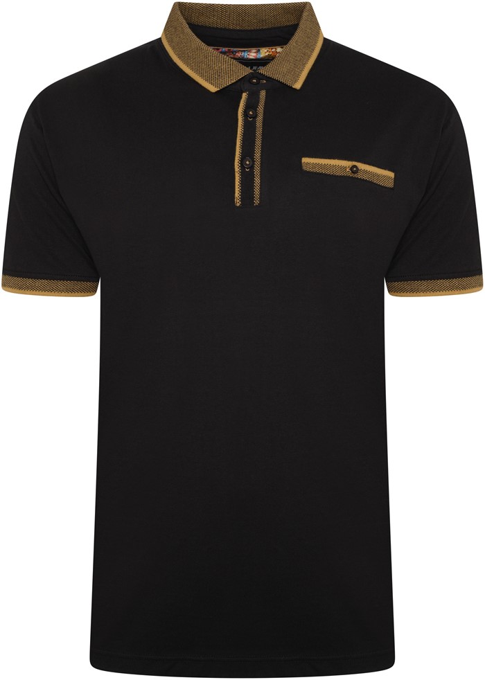 Størrelsesguide - Kam Jeans 5499 Jersey Polo with Jacquard Collar/Cuffs Black