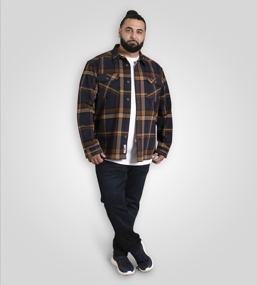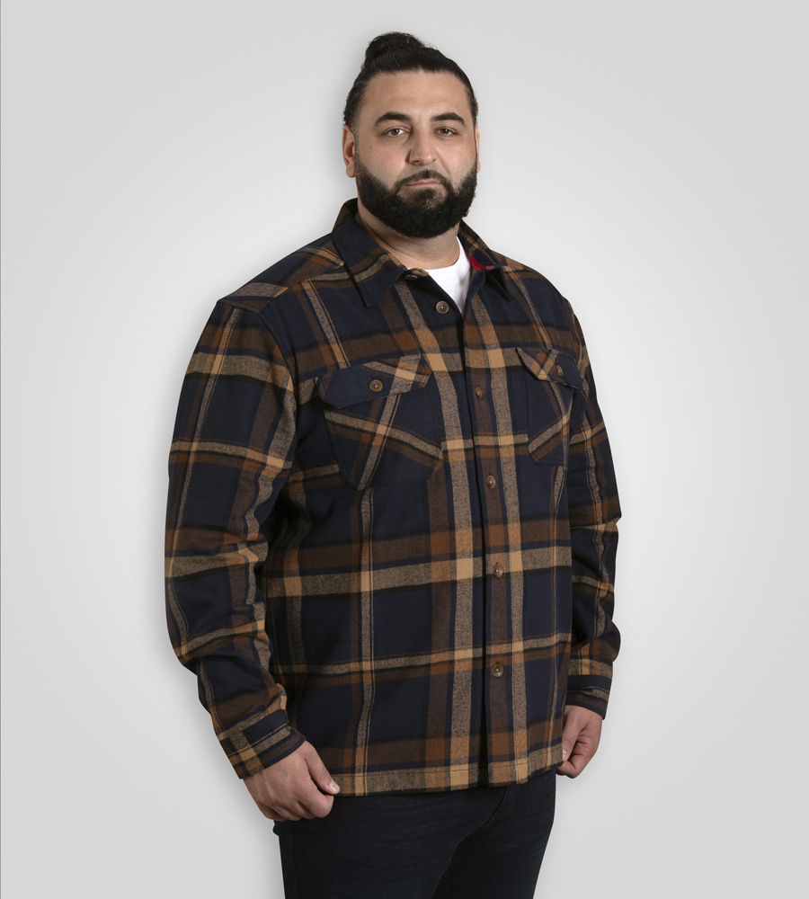 Størrelsesguide - D555 Aldershot Long Sleeve Heavy Shacket Overshirt Tan/Navy Check