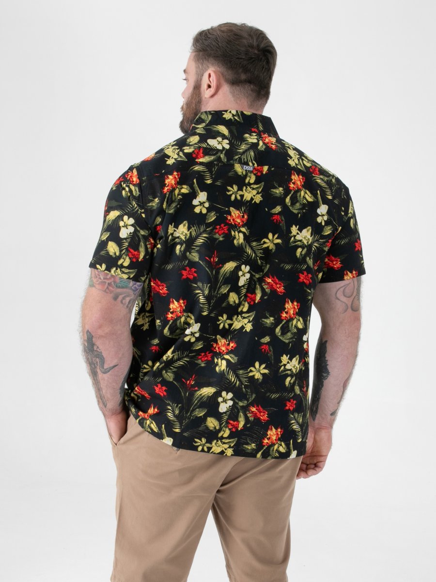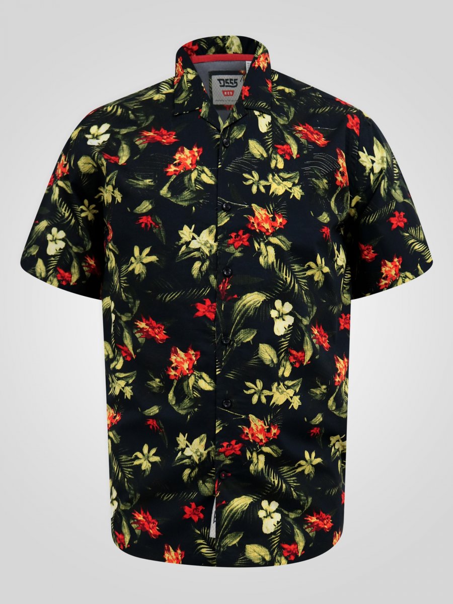Størrelsesguide - D555 Gordon Hawaiian AOP Cuvan Collar Resort Short Sleeve Black