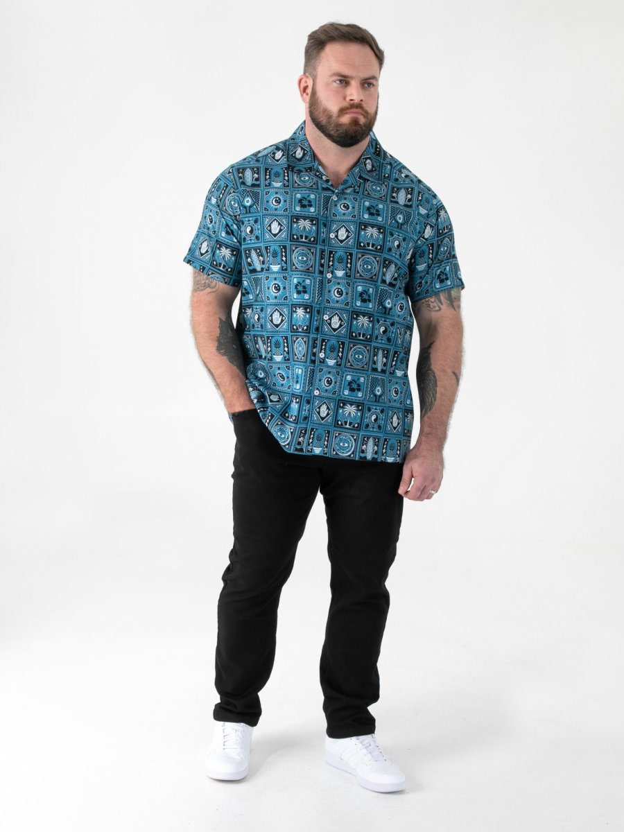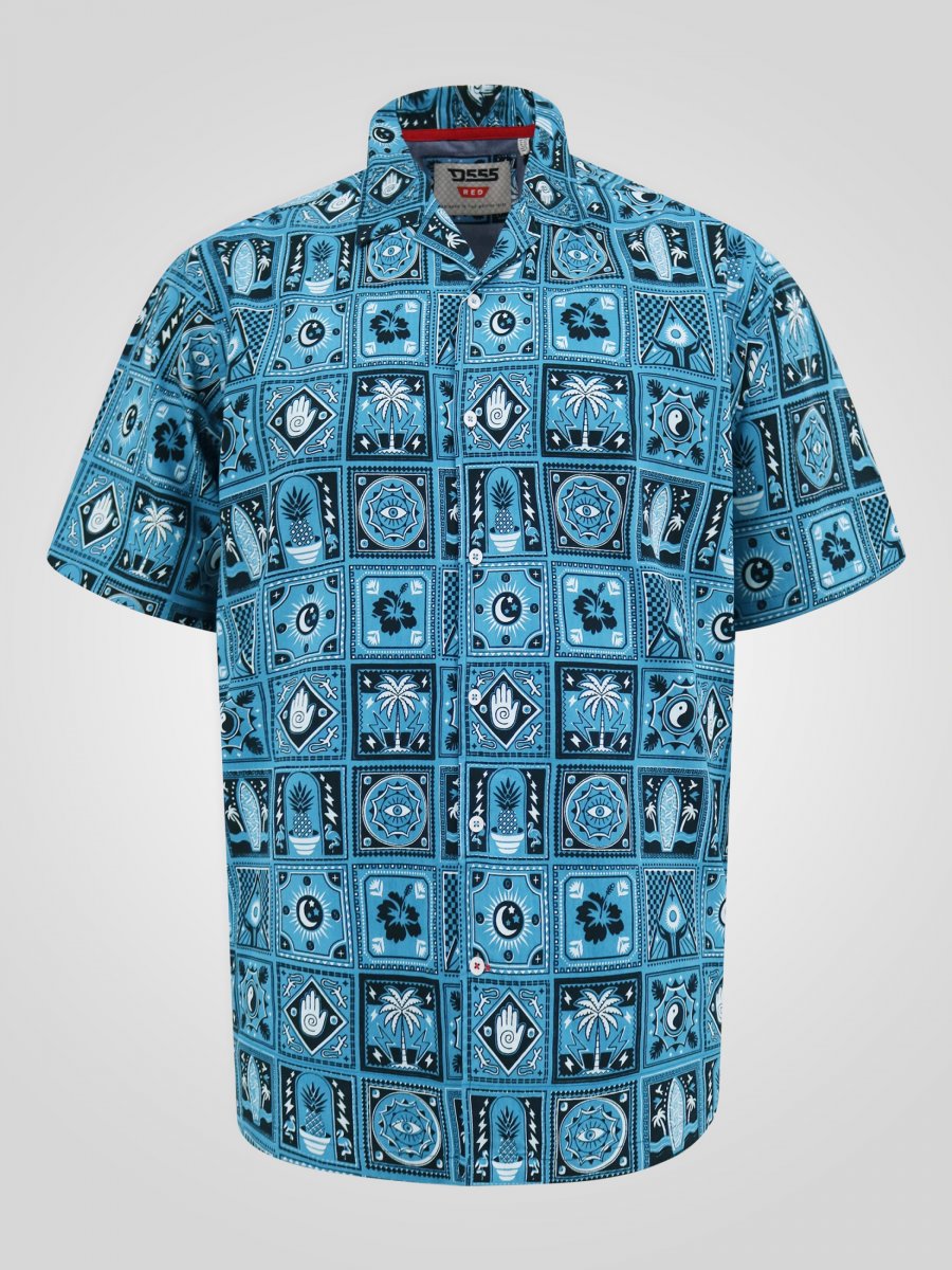Størrelsesguide - D555 Hawkins Printed Cuban Collar Resort Short Sleeve Shirt Teal