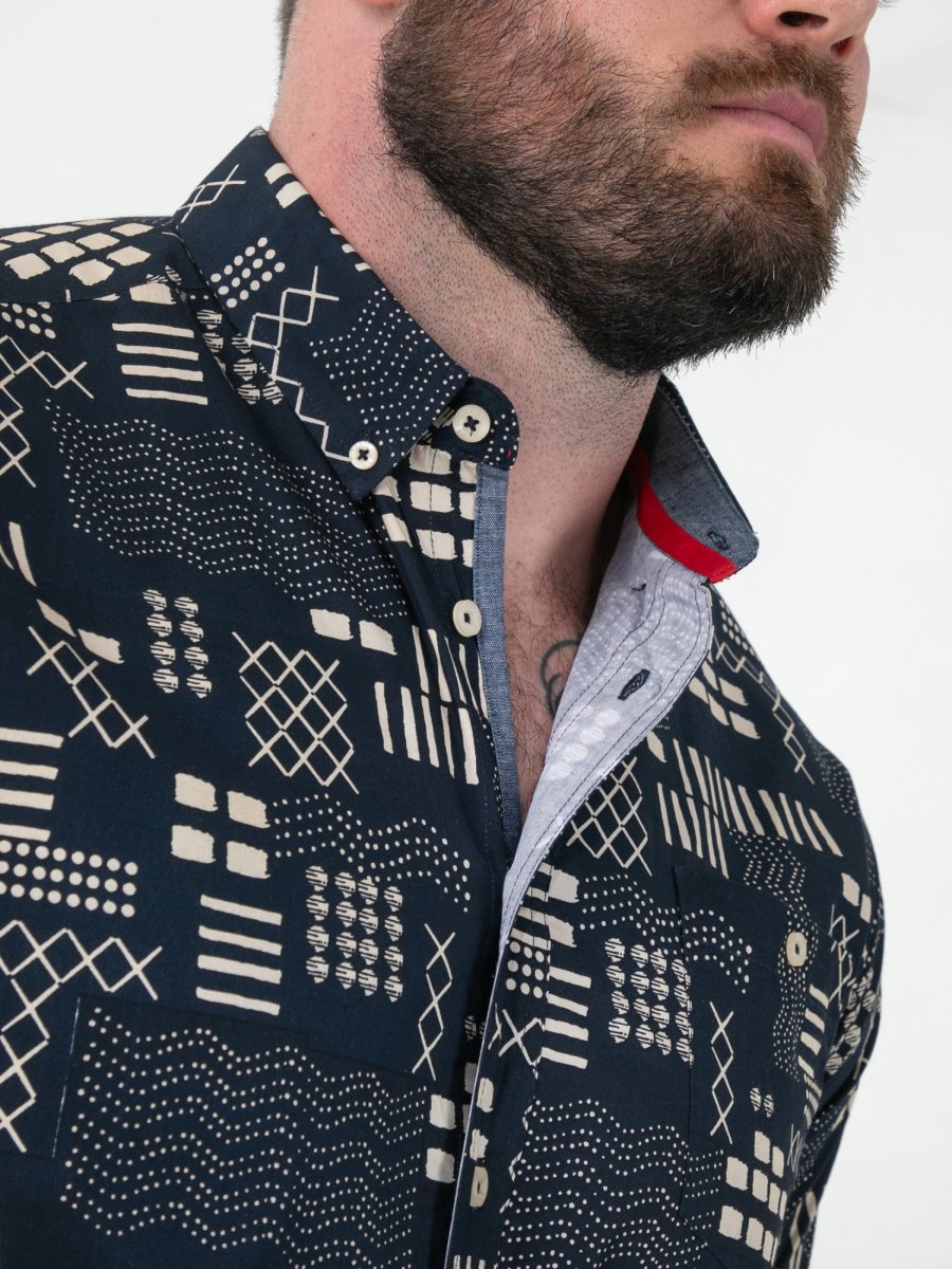 Størrelsesguide - D555 Rick Geometric Print Short Sleeve Shirt Navy