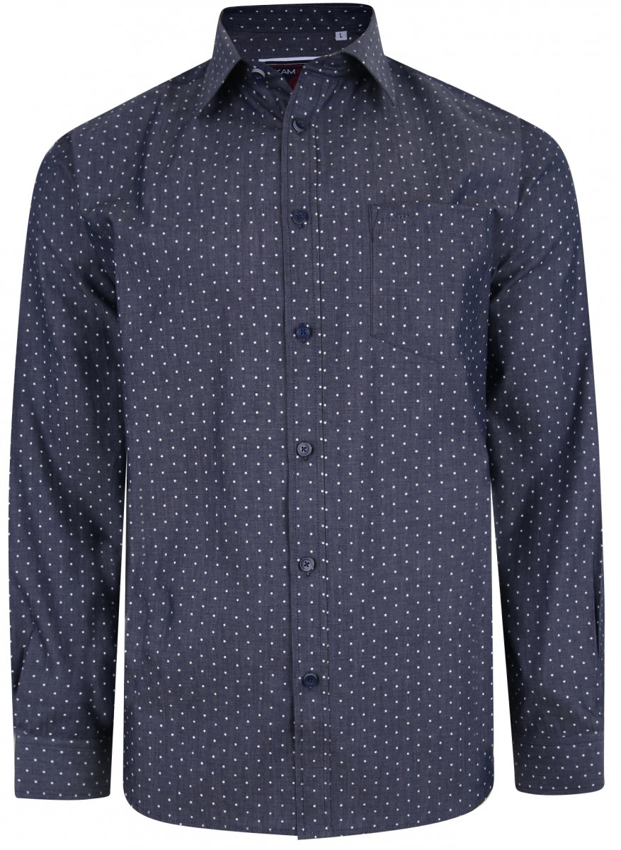 Størrelsesguide - Kam Jeans KBS 6212 Star Print Chambray Shirt Indigo