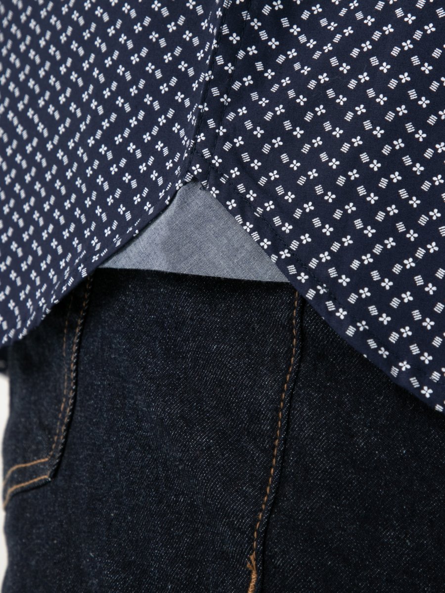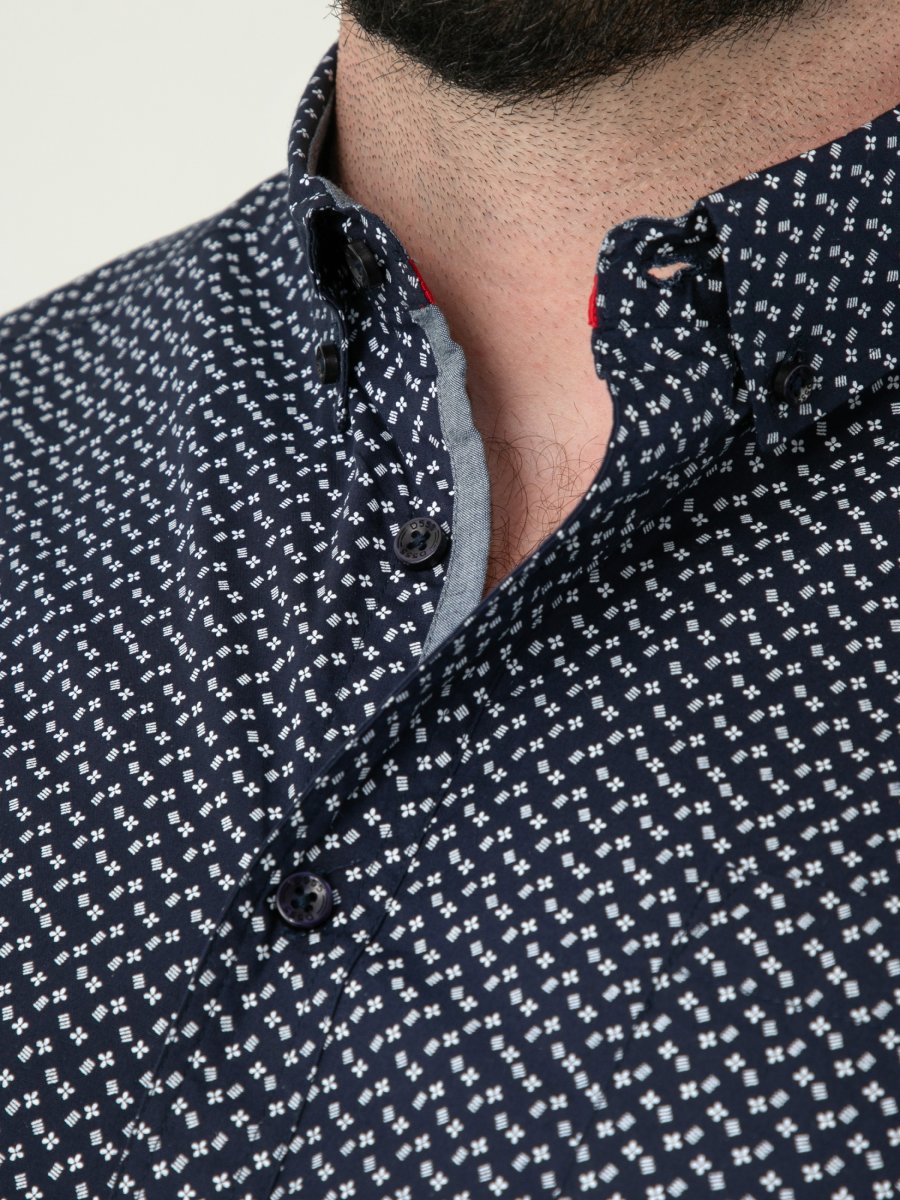 Størrelsesguide - D555 Melrose Navy Icon AOP Button Down Collar Short Sleeve Navy