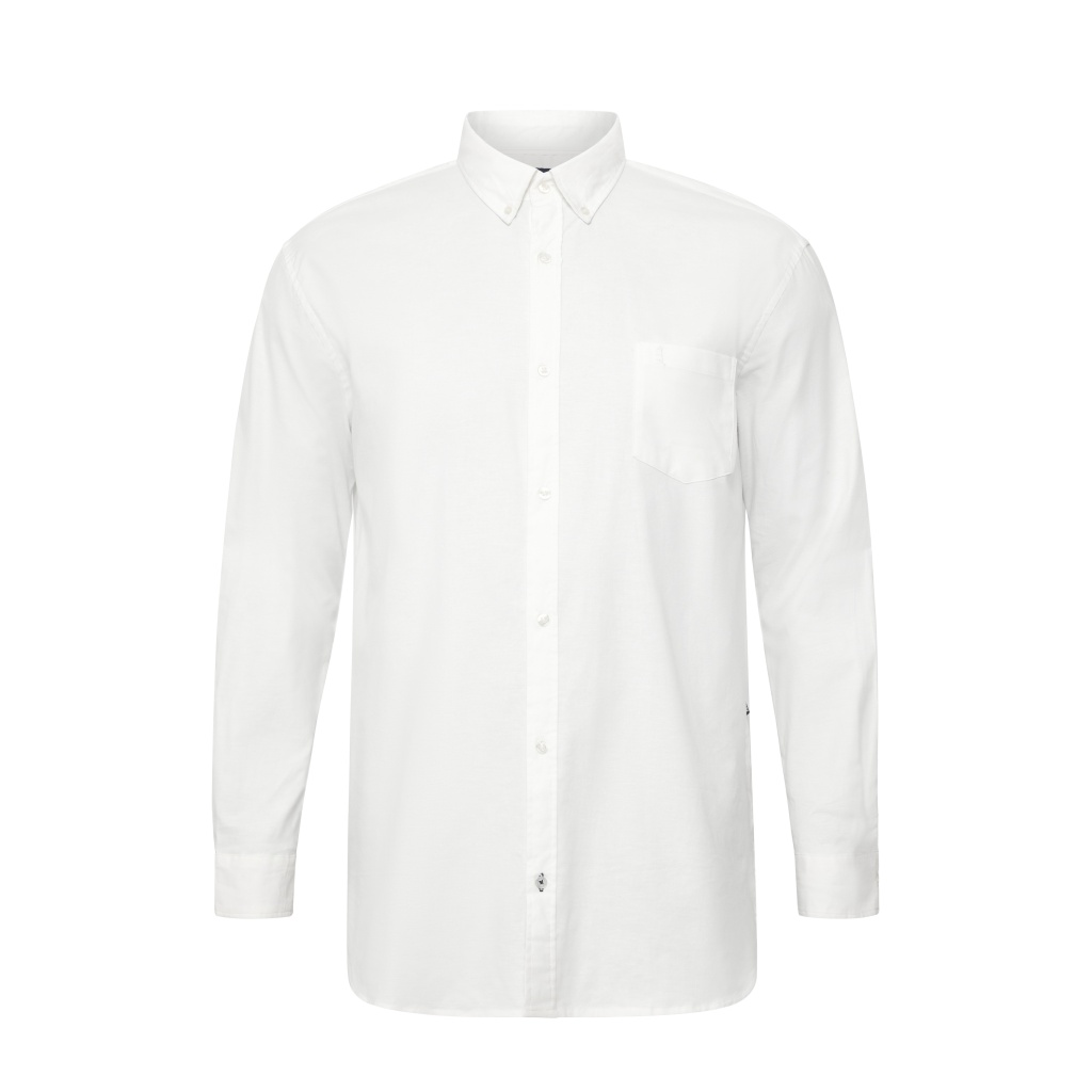 E - ryggen måles fra midten af kraven og til den nederste, syede kant