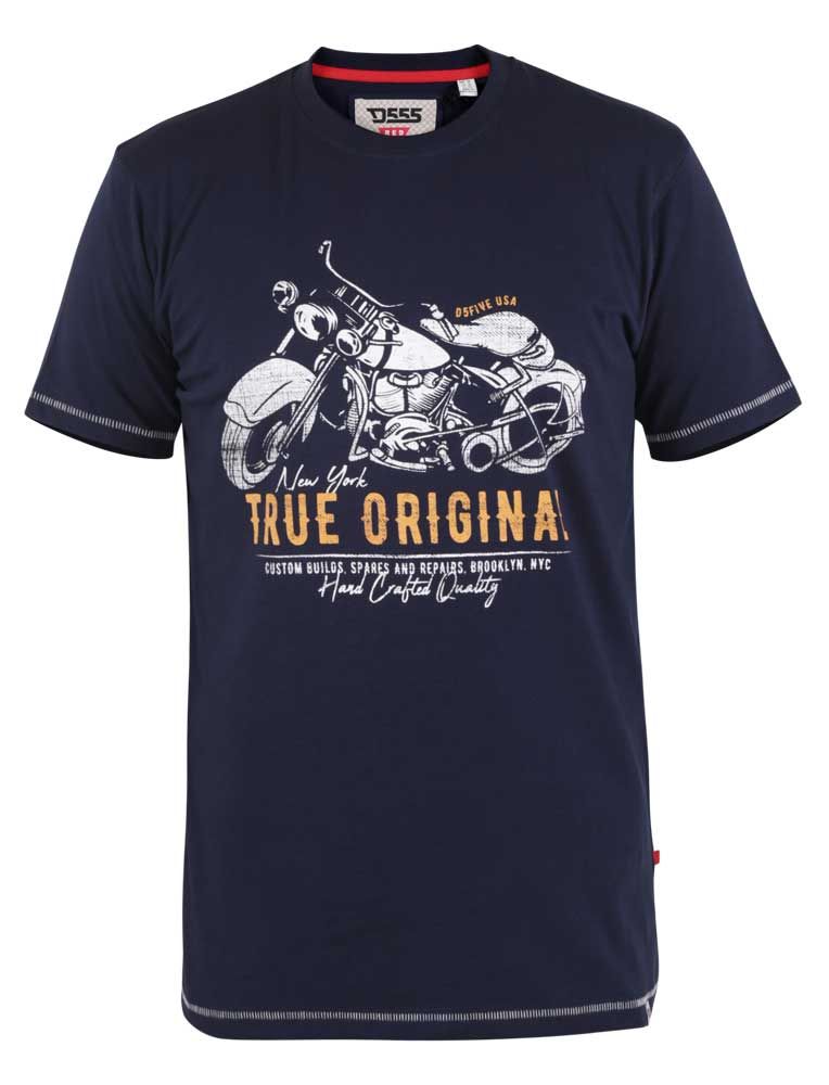 T-shirt i store størrelserFås i størrelser 2XL–6XLFra det seje mærke D555Fremstillet af 100% bomuldFarven er mørkeblåMaskinvaskes ved 30°Sæsonprodukt - størrelser tilføjes ikke løbendeKlik her for at se størrelsesguiden