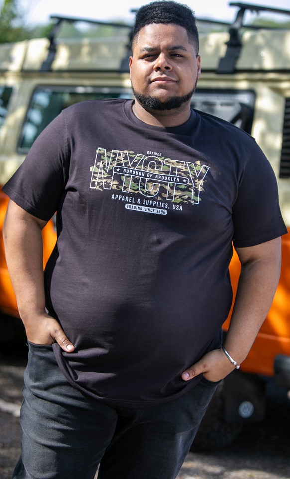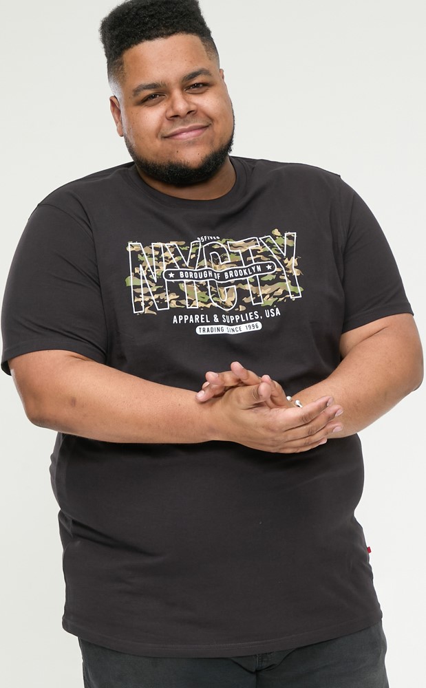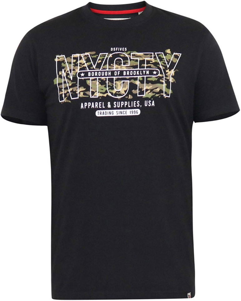 Størrelsesguide - D555 EDWALTON NYCTY Camo Printed Crew Neck T-Shirt Washed Black